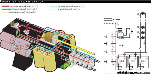 Автомат ГауссаАвтомат Гаусса – это оружие, из которого можно стрелять электромагнитными зарядами, работает по принципу ускорения электромагнитных масс с помощью магнитных катушек, расположенных вдоль канала в стволе. Очень интересным способом пули попадают в стол. В канал ствола первую пулю заряжают механическим способом. Далее катушка, которая стоит первая к обойме, подтягивает пулю. После того как пуля дошла до середины первой катушки включается вторая. По теории катушки разгоняют пулю до произвольной скорости. Данный автомат привлекает достаточно большое количество специалистов по нескольким причинам: -Во-первых, данное оружие по теории имеет высокую скорострельность, так как оружие почти не нагревается -Во-вторых, нет зависимости от ускорения и диаметра пули, следовательно есть возможность стрелять при помощи тонких и узких пуль, которые имеют повышенную пробивную способность. -В-третьих, в данном автомате не нужно использовать гильзы, поэтому это упрощает одну из частей оружия. -В-четвертых, у этого оружия отсутствуют подвижные части, так как оно электрическое и имеет довольно простую схему. К сожалению, автомат Гаусса существует только в макетах, оно не работает, так как в настоящие время нет подходящих пуль для данного оружия. Недавно инженеры из США показали на выставке прототип рабочего автомата с 15-тью зарядами. Скорострельность данного автомата-7,6 выстрелов в секунду. Технологии использованные при его создании не раскрываются. Специалисты высказывают свое мнение о том , что в бедующем автомат Гаусса превзойдет обычное стрелковое оружие. Схемы автомата Гаусса представлены на многих интернет-страницах, поэтому у нас с вами существует возможность собрать данное оружие в домашних условиях. К тому же замечали ли вы что автомат Гаусса можно встретить в различных компьютерных играх, где данное оружие сравнивают по силе с РПГ? Автомат Гаусса скорее вписывающиеся в рамки фантастики, нежели реальности. Но не будем торопится с выводами, ведь время покажет.